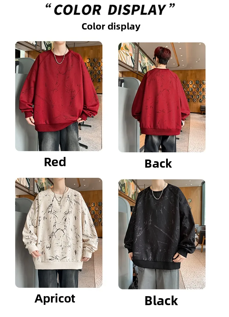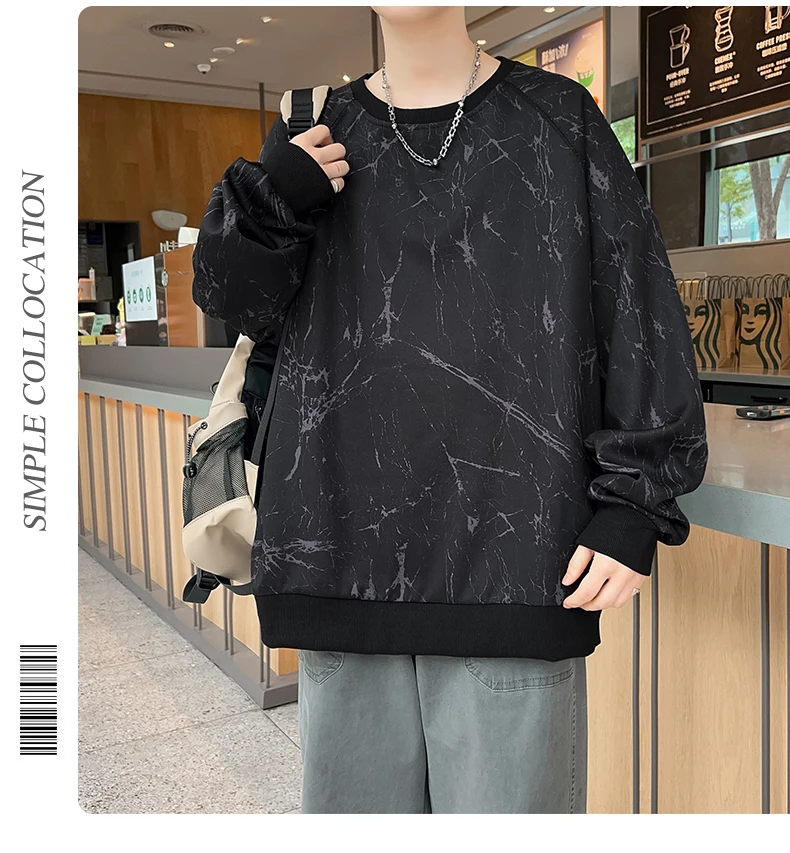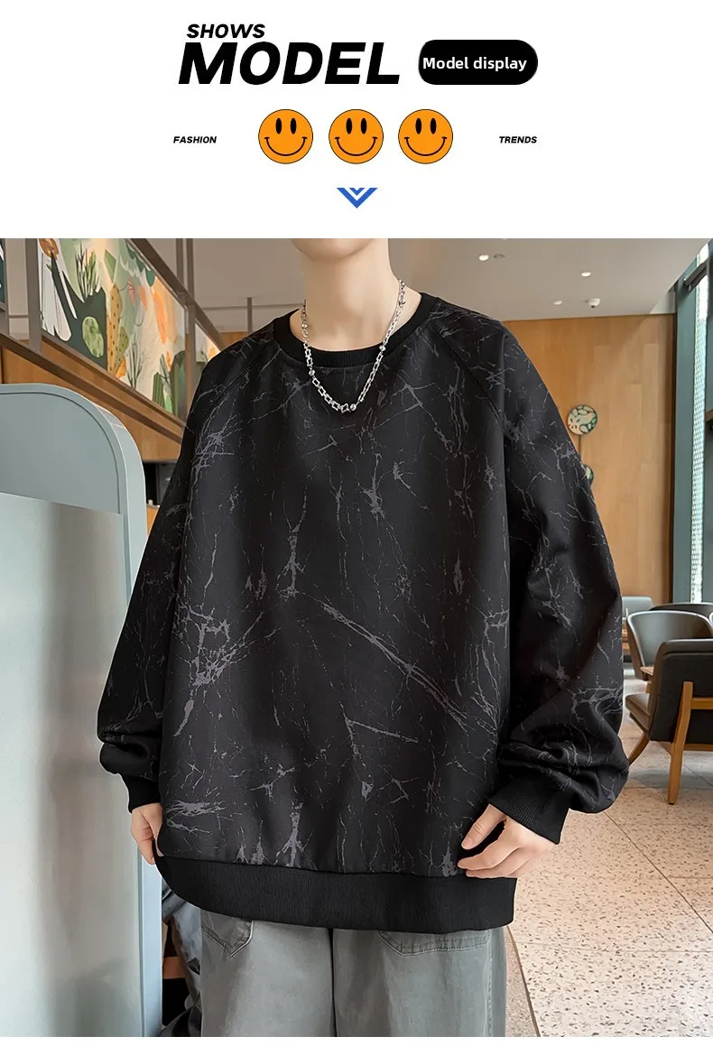 New Large-sized Sweatshirt for Spring Autumn Men's Wear Featuring A Casual Fashionable Round-neck Loose Versatile Long-sleeved