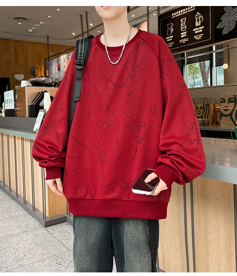 New Large-sized Sweatshirt for Spring Autumn Men's Wear Featuring A Casual Fashionable  Round-neck Loose Versatile Long-sleeved